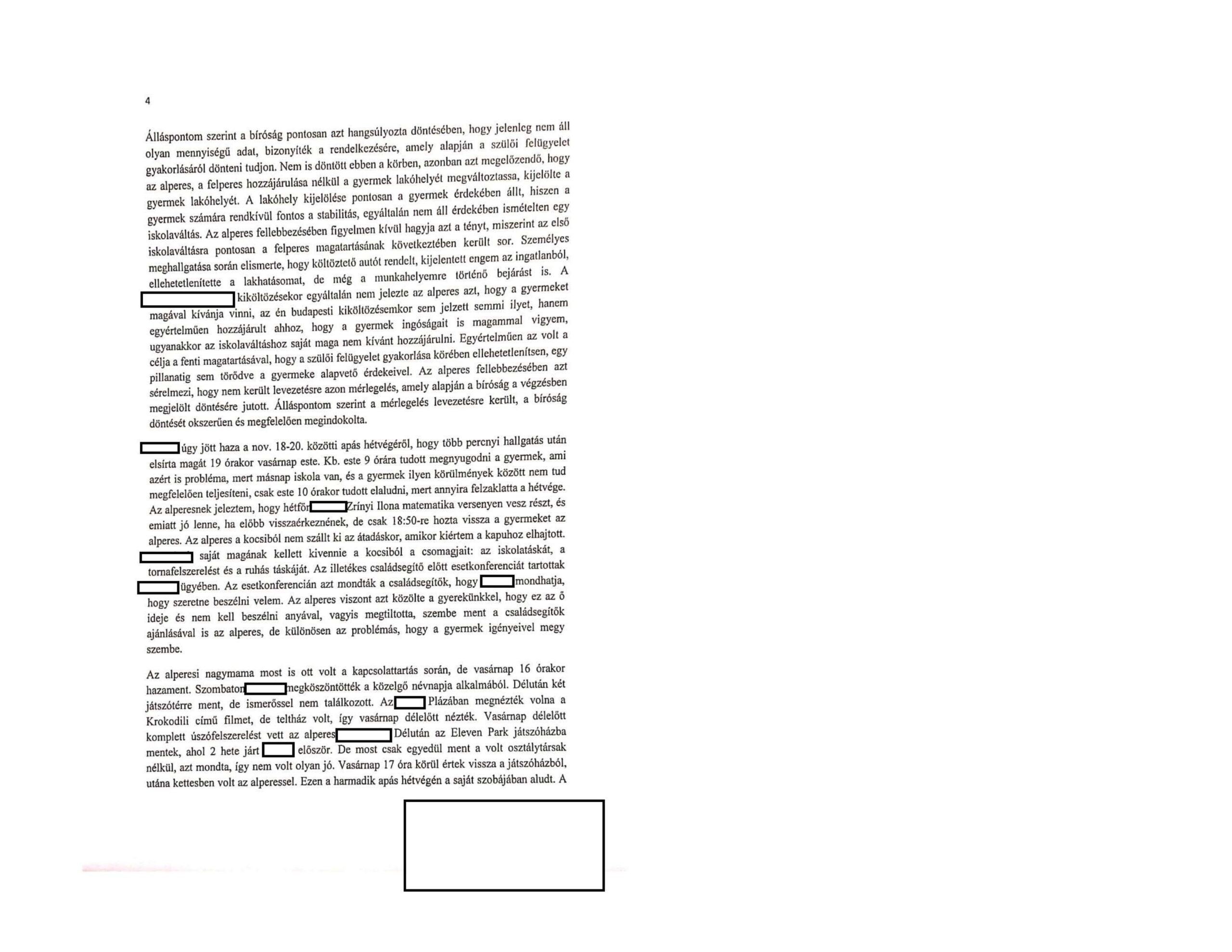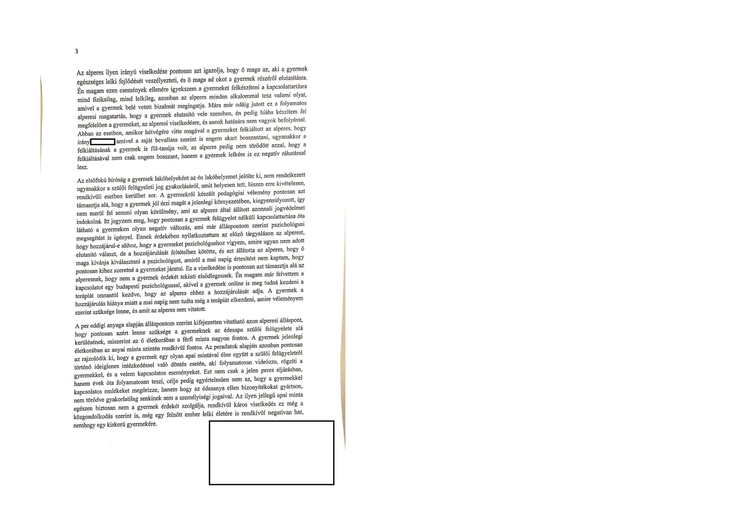 Az alperes ezen viselkedése alapján egyértelműen megállapítható, hogy nem alkalmas a szülői felügyelet gyakorlására, de sajnos még a kapcsolattartás gyakorlására sem.